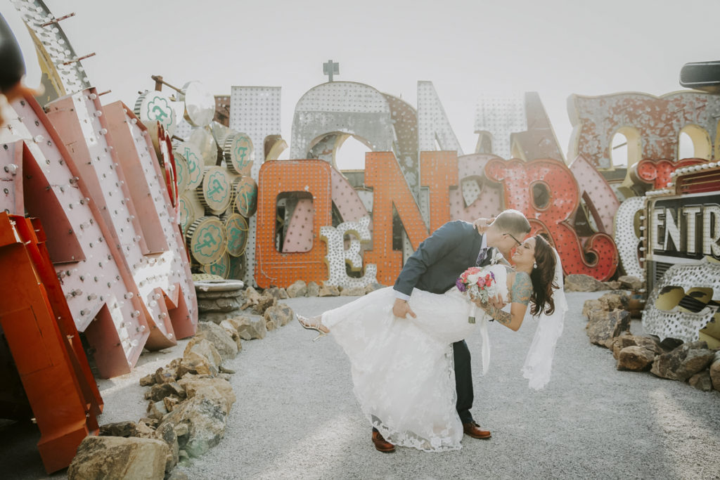 If you want funky, this is it. The Neon Museum has funky in spades; filled with the iconic signs from Las Vegas’ past. The main Boneyard part of the museum has more than 200 unrestored signs, lit up by ground lights at sunset. Say your vows underneath the original Stardust Casino sign or pose for shots in front of the Lady Luck Casino sign. It’s cool AF, trust us.