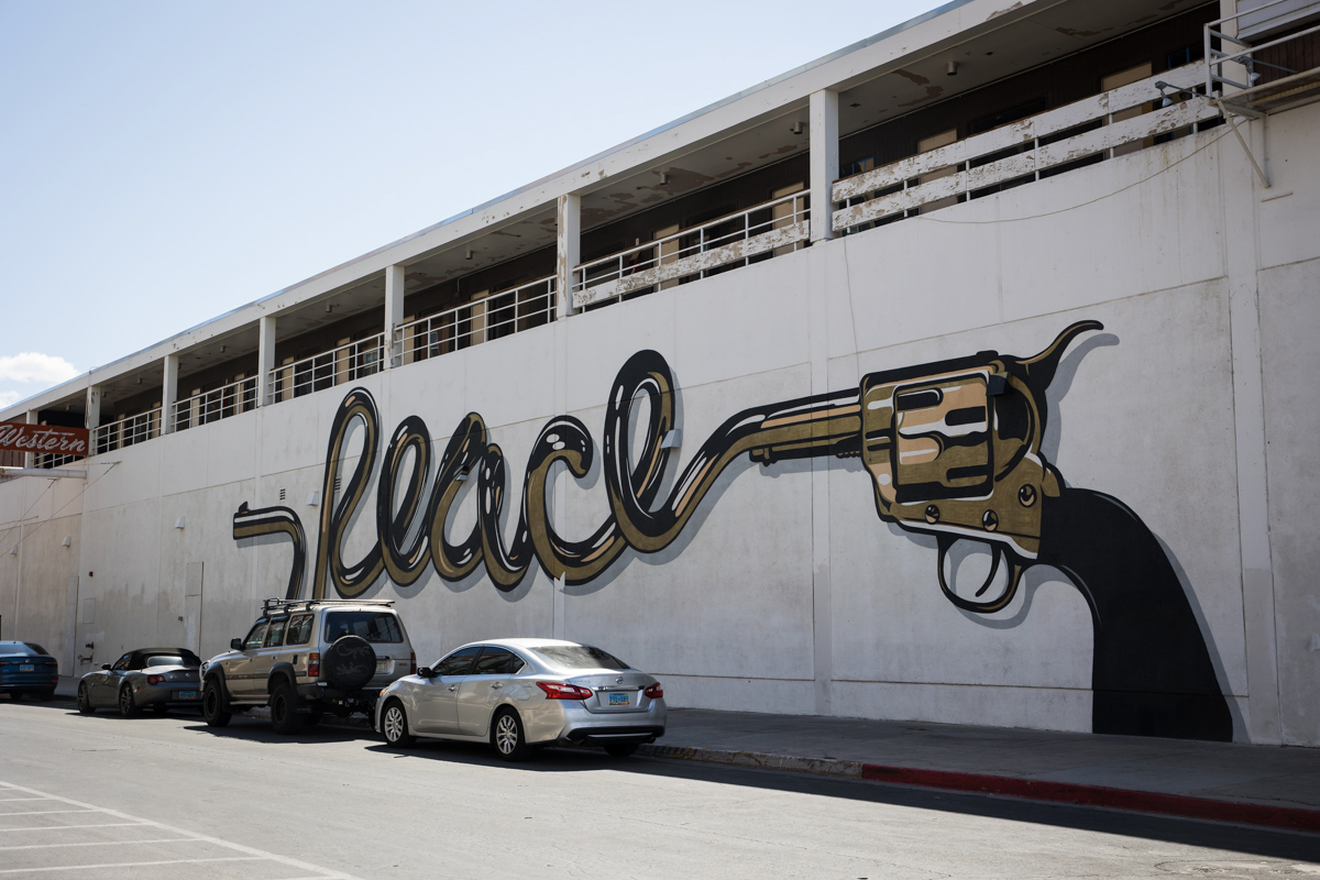 For the pacifist, for the lovers of the Old West or for couples who like a little grit in their love story, there’s Peacemaker by D*Face at 899 Fremont Street.